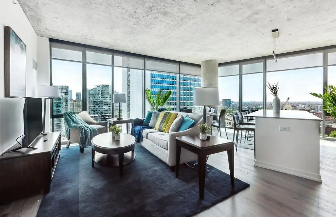 The 2-room 2Br Stunning River North Suite With Pool & Views apartment is situated in Chicago, within 1.5 km of the downtown Museum Of Contemporary Art Chicago, and offers spa amenities such as an outdoor swimming pool. 10 minutes' walk from Clark/Division tube station, the apartment is within a minutes' drive of The Richard H. Driehaus Museum.